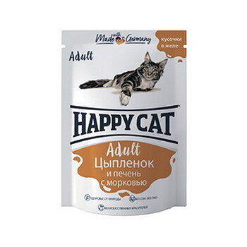 HAPPY CAT для взрослых кошек с цыпленком, печенью и морковью в желе 7502308 (100 гр х 24 шт)