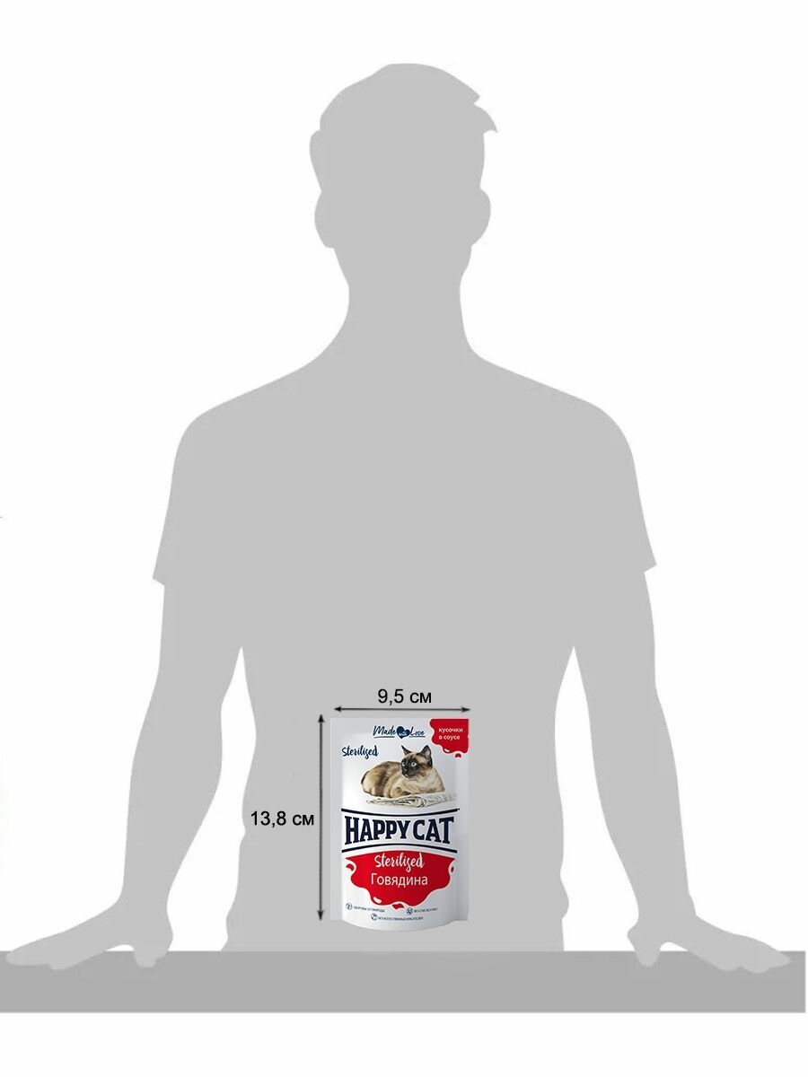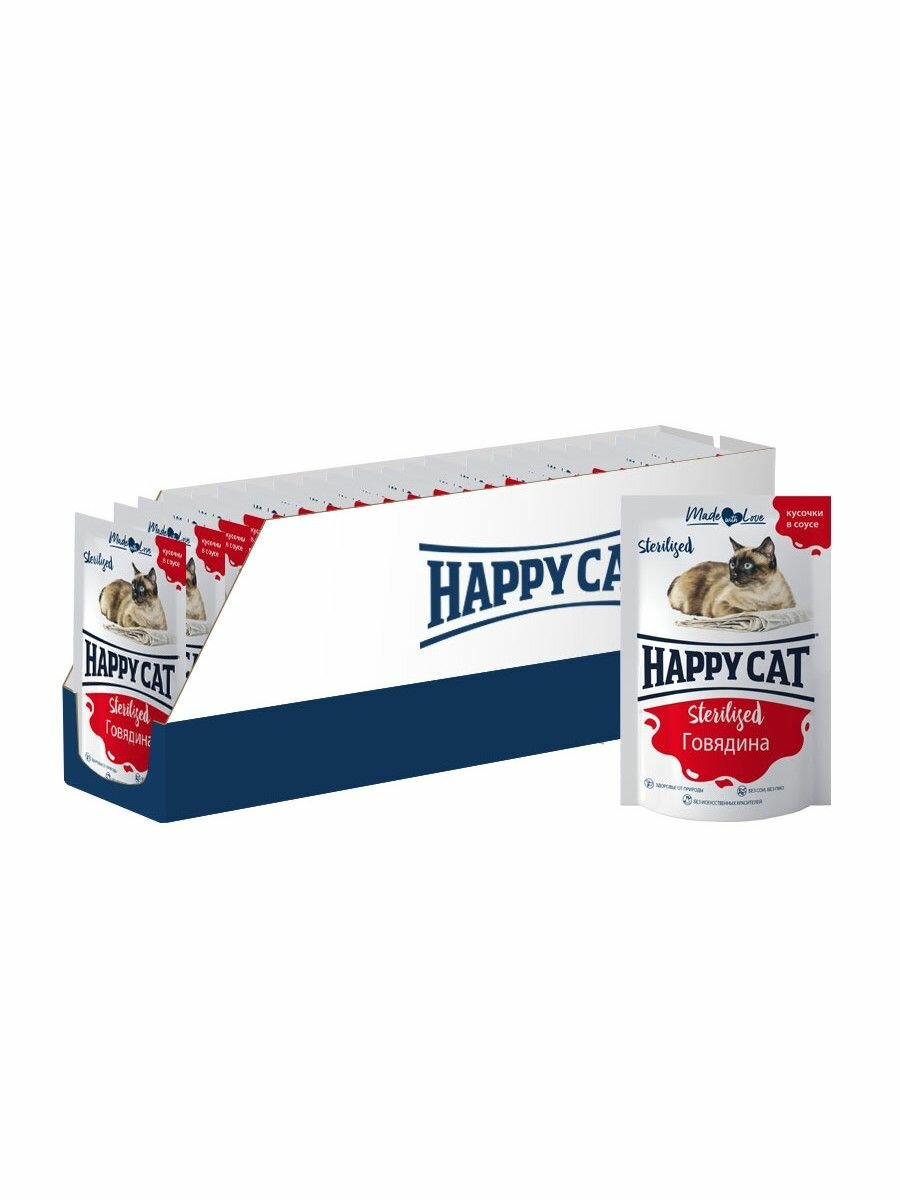 Купить Паучи Хэппи Кэт для стерилизованных кошек, кусочки говядины в соусе, 85 гр * 24 шт