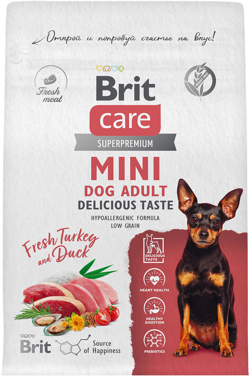 BRIT CARE MINI DOG ADULT DELICIOUS TASTE для привер взрослых собак малень пор индейка утка 0,4 кг