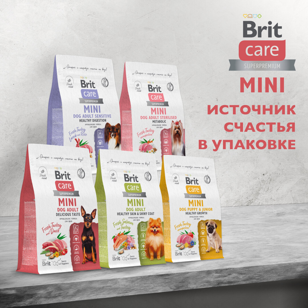 BRIT CARE Mini, Сухой корм с индейкой для щенков и молодых собак мини пород "Puppy&Junior. Healthy Growth",1.5кг