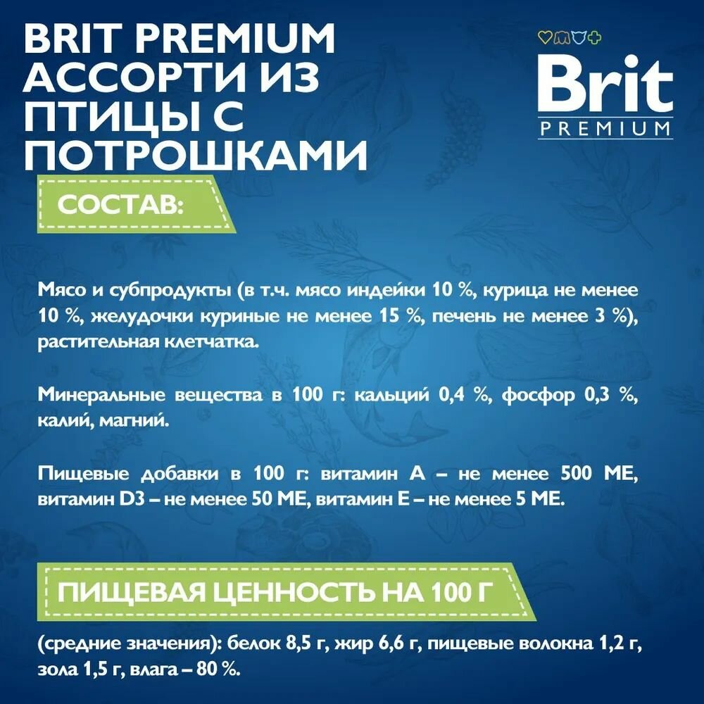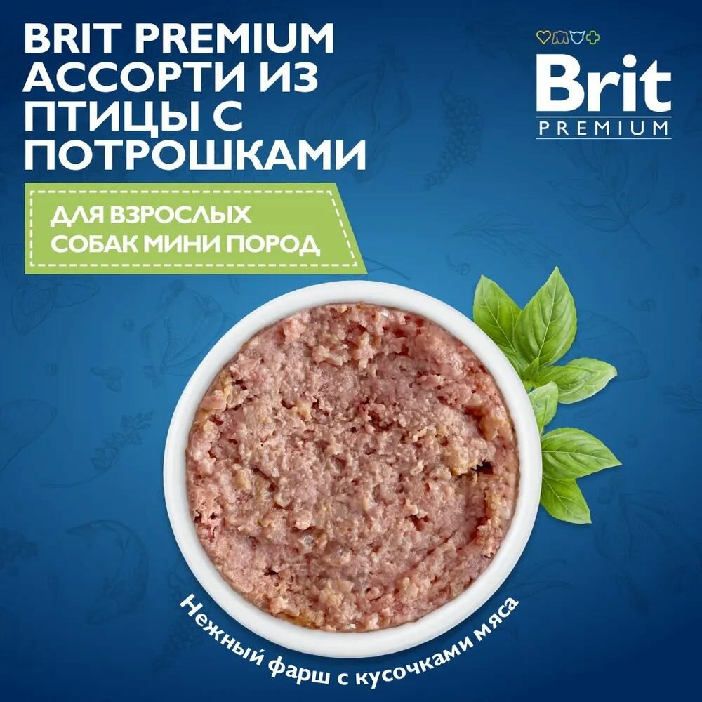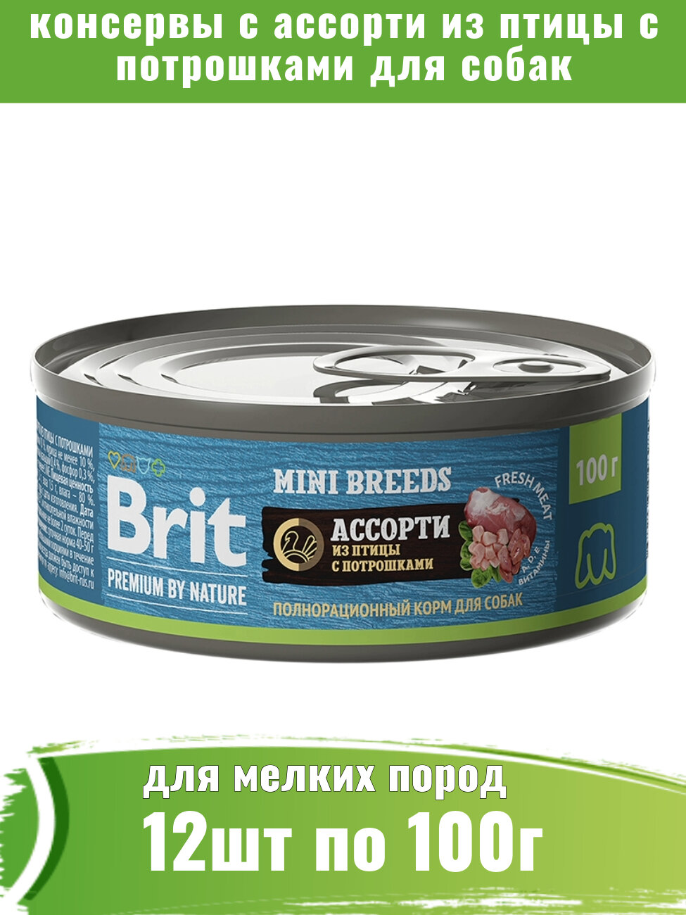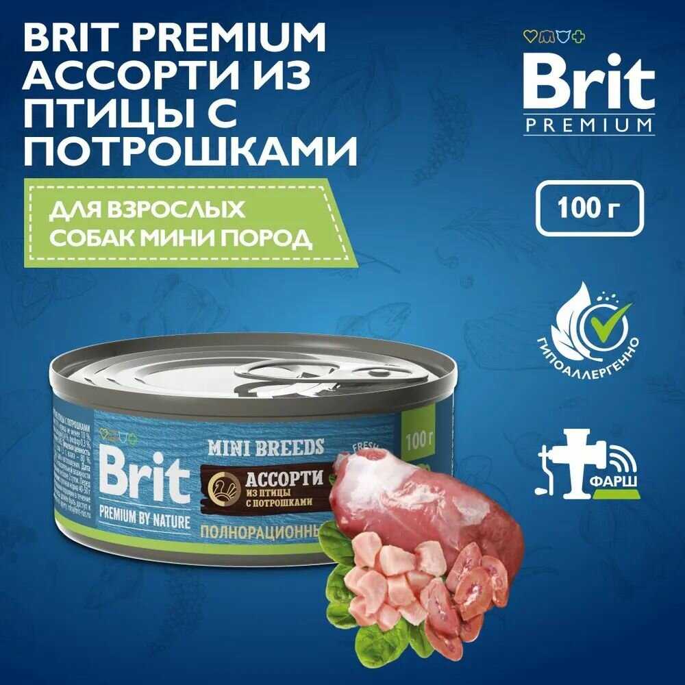Купить Brit Premium by Nature консервы для взрослых собак мелких пород ассорти из птицы с потрошками - 100 г x 12 шт