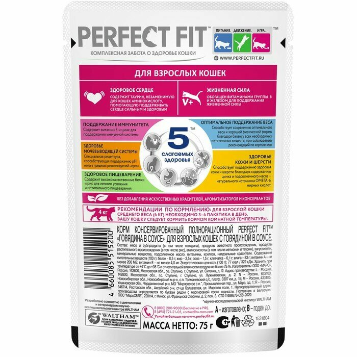 СохранитьPERFECT FIT Влажный корм для взрослых кошек с говядиной в соусе - 75 г интересное: