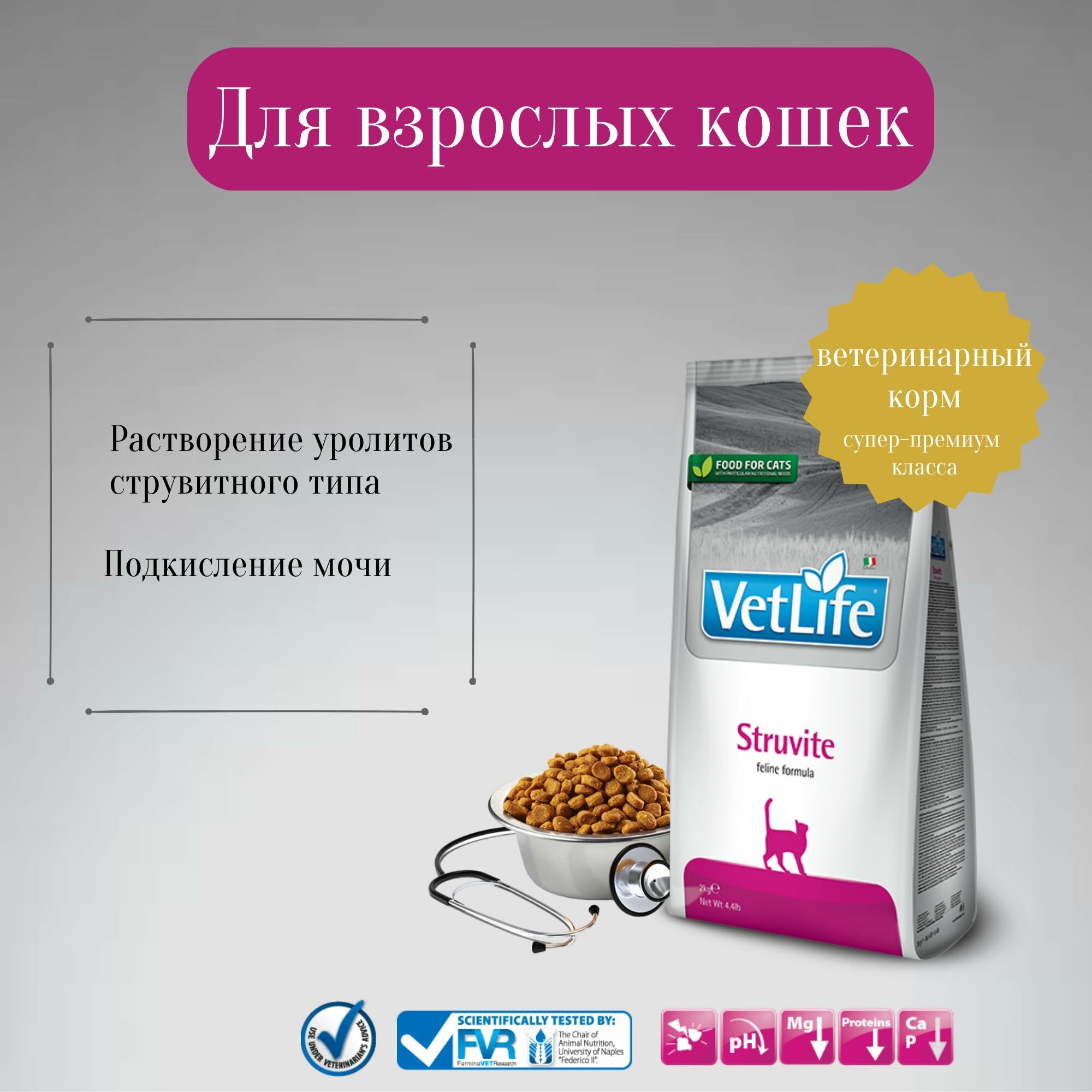 Vet Life Cat Struvite корм для кошек при струвитах Диетический, 2 кг.