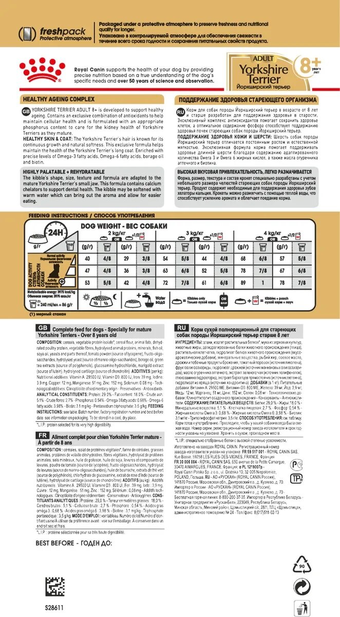 Сухой корм ROYAL CANIN для собак йоркшир эдалт 8+ 1.5 кг интересное: