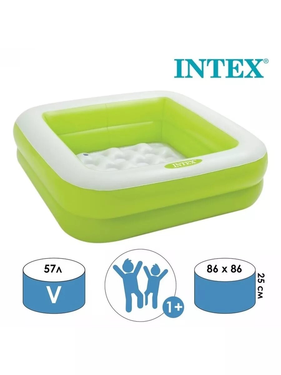 Бассейн 57100 intex 1-3 года 85*85*23см 57л, от 1 до 3 лет, надувное дно