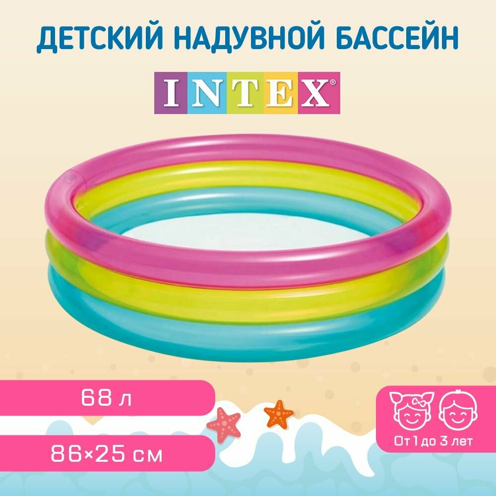 Горки, песочницы и бассейны INTEX Бассейн надувной «Радуга», 86 х 25 см, 1-3 лет, 57104NP INTEX