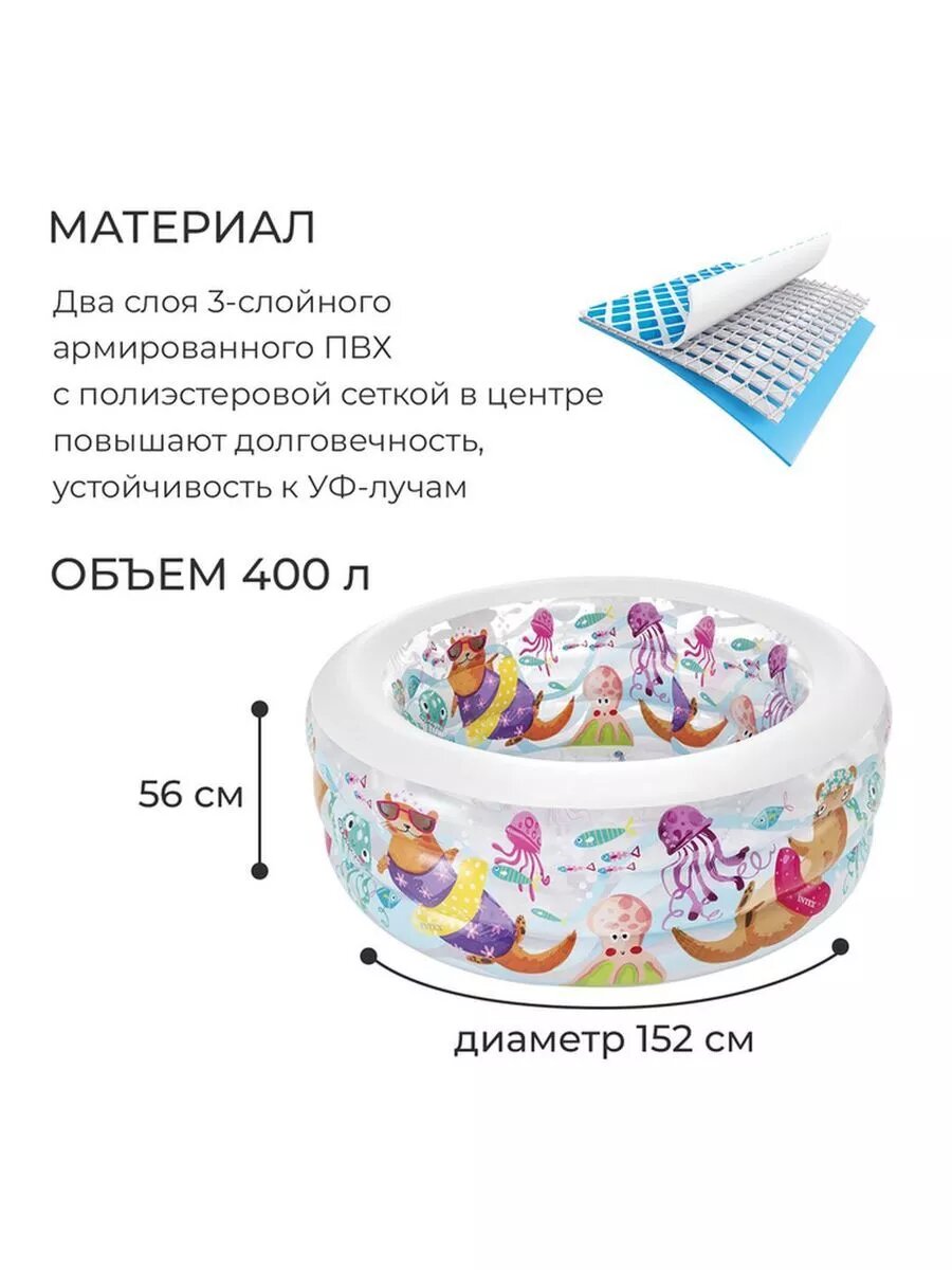 Детский надувной бассейн INTEX "Аквариум" с надувным дном 152х56 см, 360л, от 6 лет интересное: