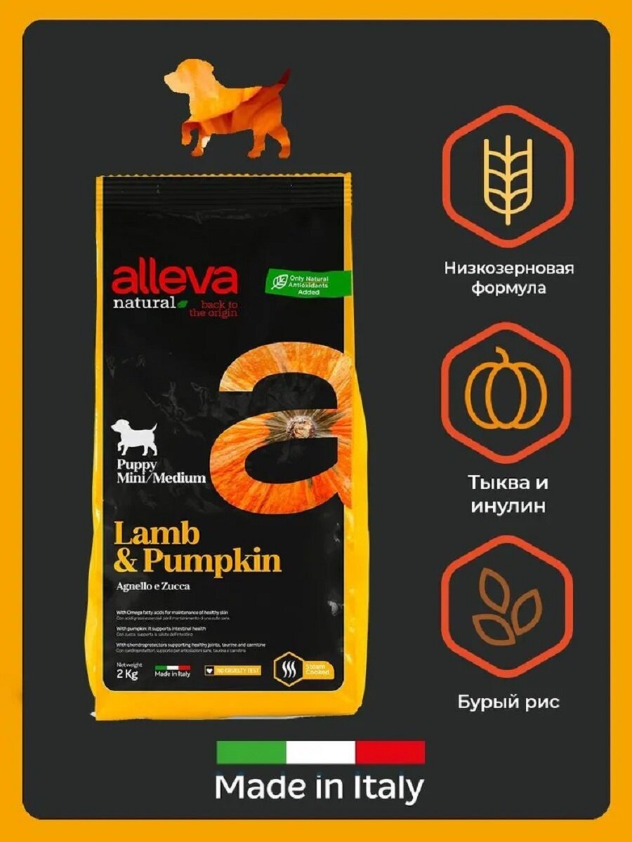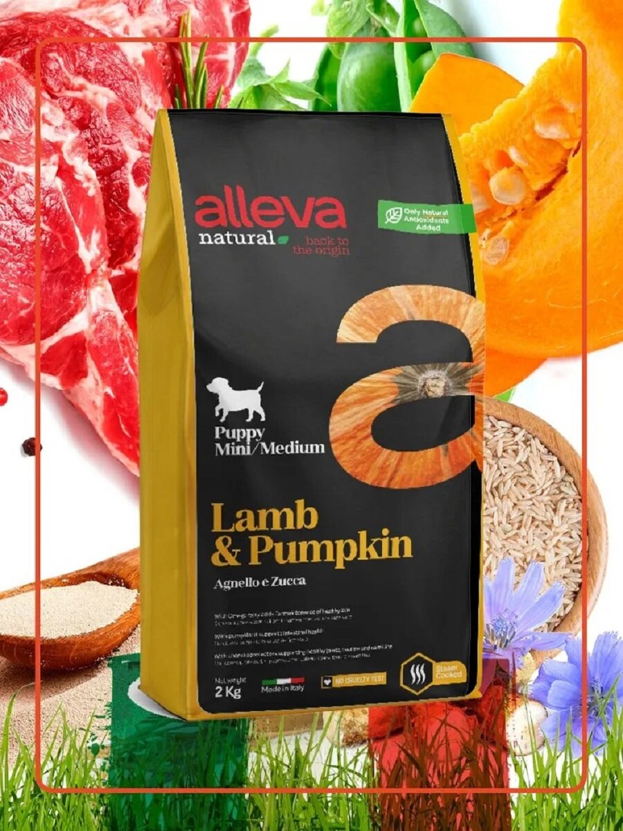 ALLEVA NATURAL PUPPY MINI/MEDIUM LAMB & PUMPKIN низкоз дл щен мален и сред пород с ягненк и тыквой 2 кг