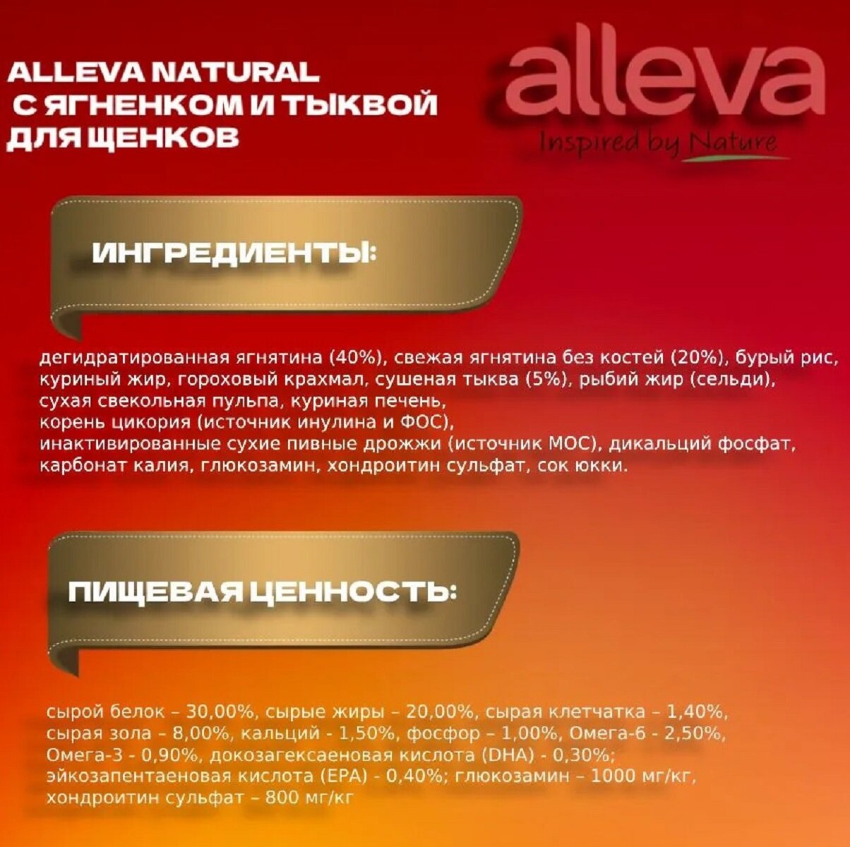 ALLEVA NATURAL Корм для щенков с ягненком и тыквой. Для всех пород 12 кг