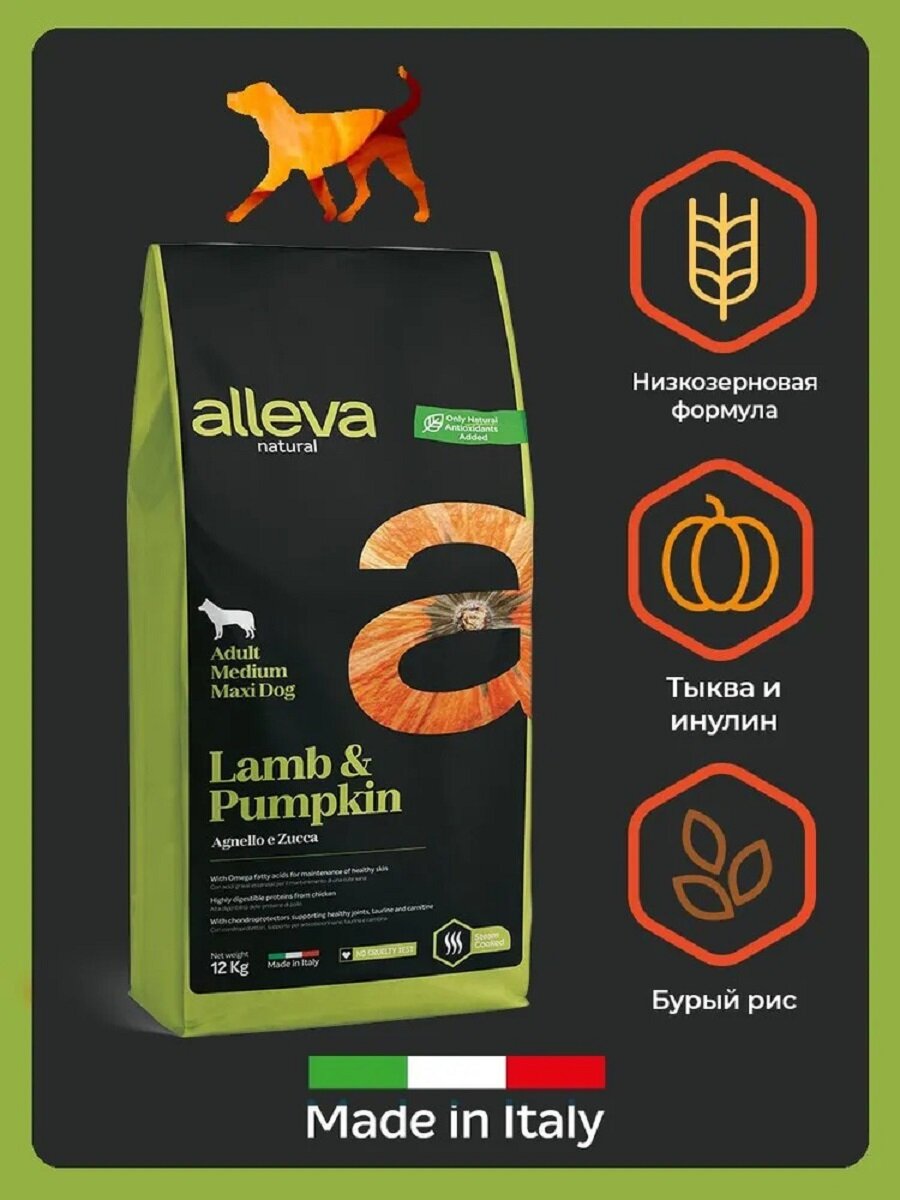 Сухой корм для собак ALLEVA NATURAL ADULT LAMB & PUMPKIN MEDIUM/MAXI Аллева Натурал для взрослых собак средних и крупных пород с ягненком и тыквой 12 кг