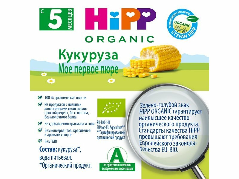 Пюре HiPP Organic с кукурузой без сахара с 5 мес., 80 г интересное: