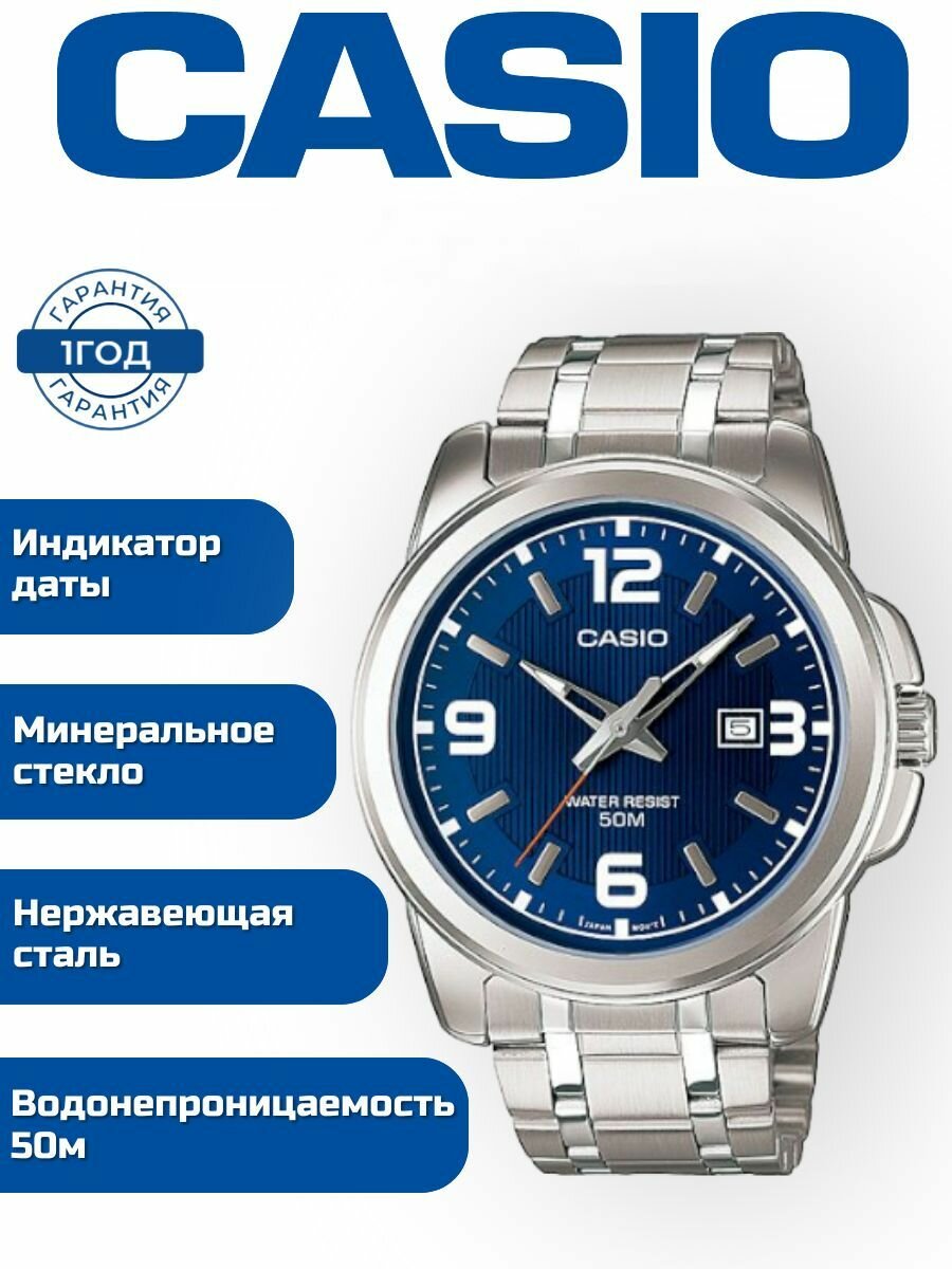 Наручные часы CASIO MTP-1314D-2A, серебряный, синий