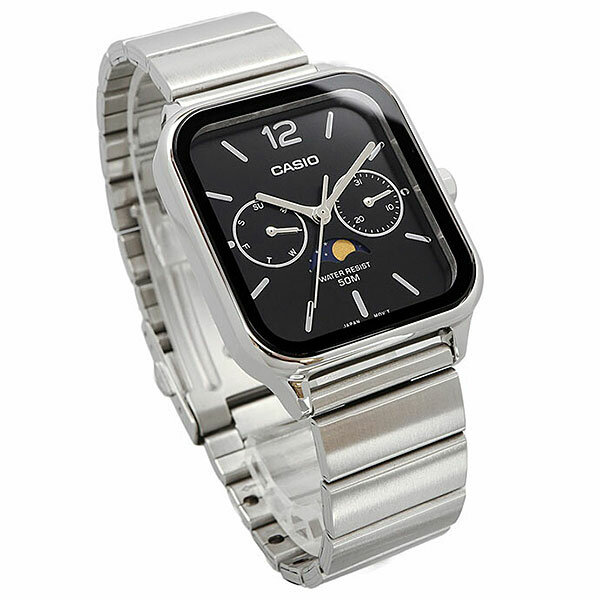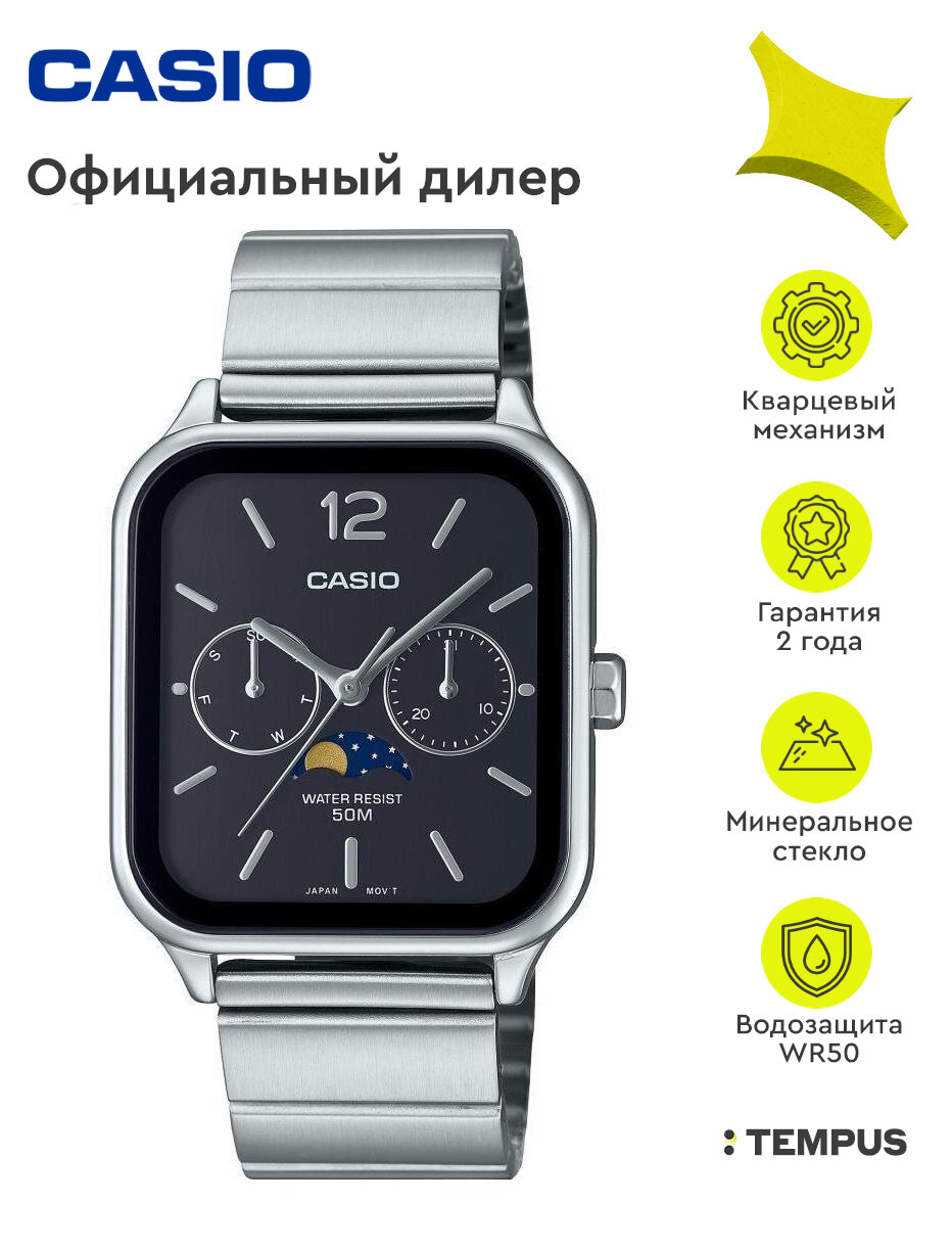 MTP-M305L-7A Casio наручные часы кварцевые WR50 (5 атм) мужские хром, черный отображение числа, восход/закат, вечный календарь, отображение дня недели, второй часовой пояс, отображение месяца минеральное стекло
