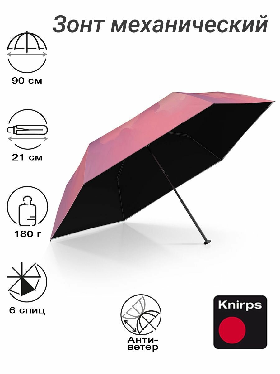 Мини-зонт женский механический Knirps, 3 сложения, антиветер, вес 115 г, 6 спиц, розовый