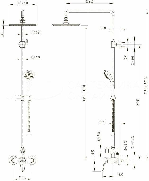 | Дополнительная информация | высота стойки для душа: 1304 мм; диаметр верхнего душа: 200 мм |