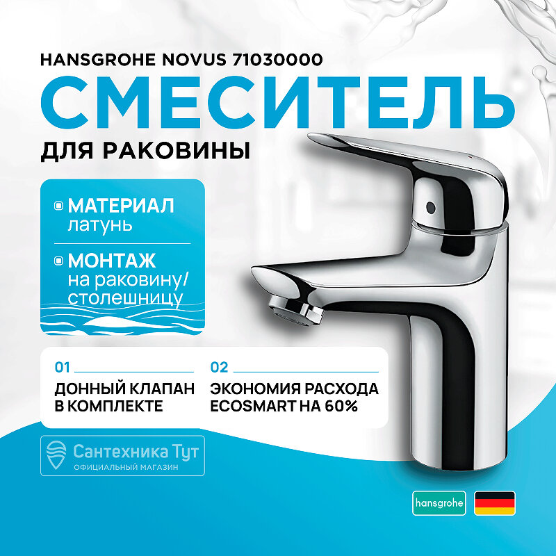 Смеситель для раковины Hansgrohe Novus с донным клапаном, хром (71030000)