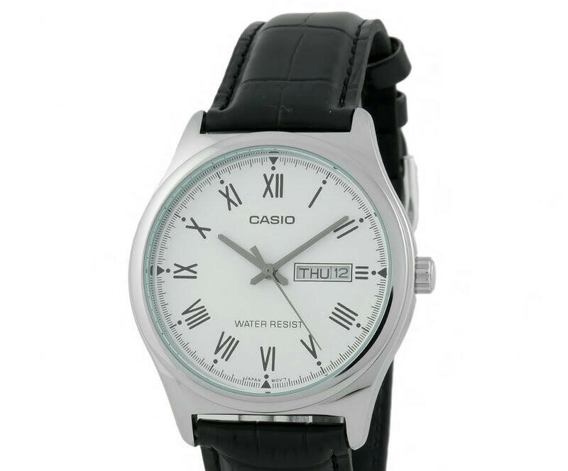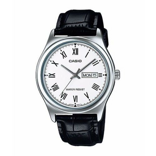 MTP-V006L-7B Casio наручные часы кварцевые WR30 (3 атм) мужские хром, черный отображение числа, отображение дня недели минеральное стекло