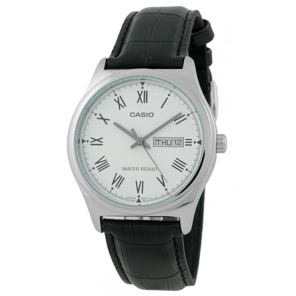 Купить MTP-V006L-7B Casio наручные часы кварцевые WR30 (3 атм) мужские хром, черный отображение числа, отображение дня недели минеральное стекло