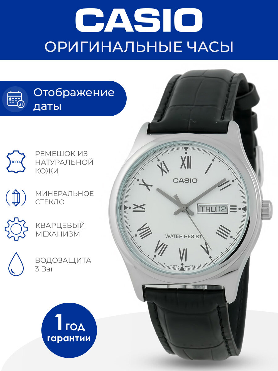Наручные часы CASIO MTP-V006D-1B, черный, серебряный