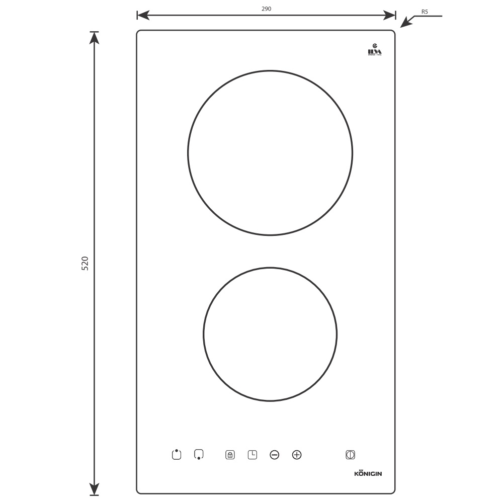 Варочная панель электрическая встраиваемая Konigin / Конигин Virgo C302 TBK черный стеклокерамика габариты 29х5х52см 2 конфорки / плита для кухни