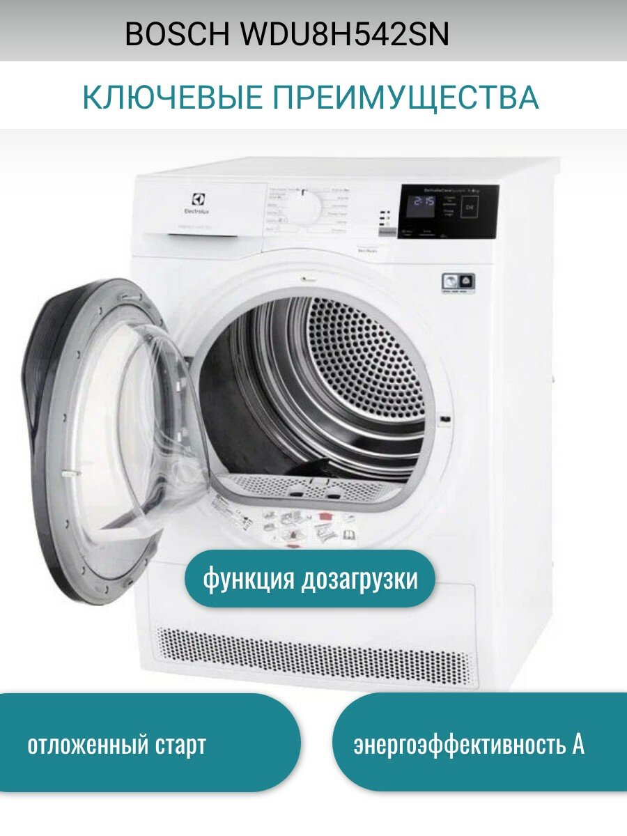 Стиральная машина Bosch Serie 6 WDU8H542SN, с фронтальной загрузкой, 10кг, 1400об/мин, с сушкой, инверторная, с английской панелью управления интересное: