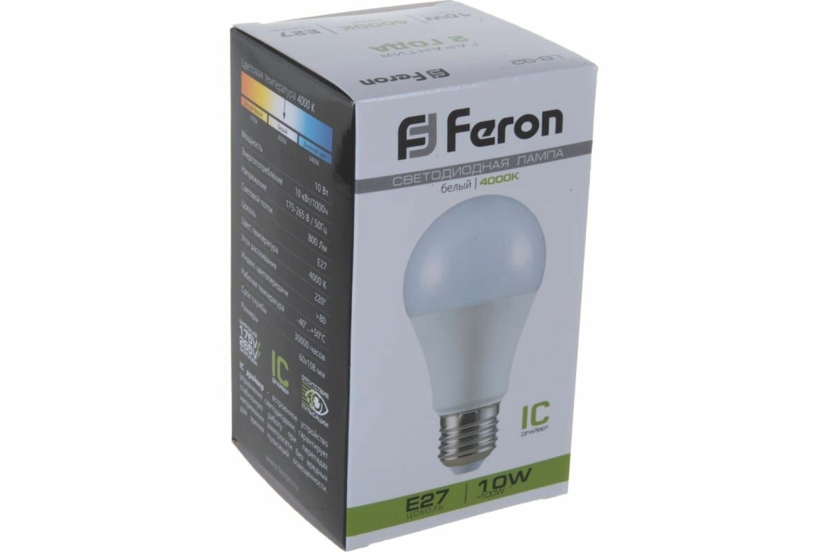 Купить 10шт/уп. Лампа LED Груша 10Вт 230B A60 E27 800Лм 4000К Свет Нейтральный белый арт. 25458 Feron, уп. 10шт