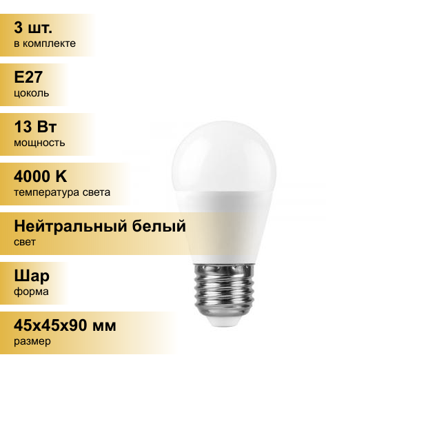 Лампа светодиодная LB-950 Шарик E27 13W 4000K, FERON 38105 (1 шт.)