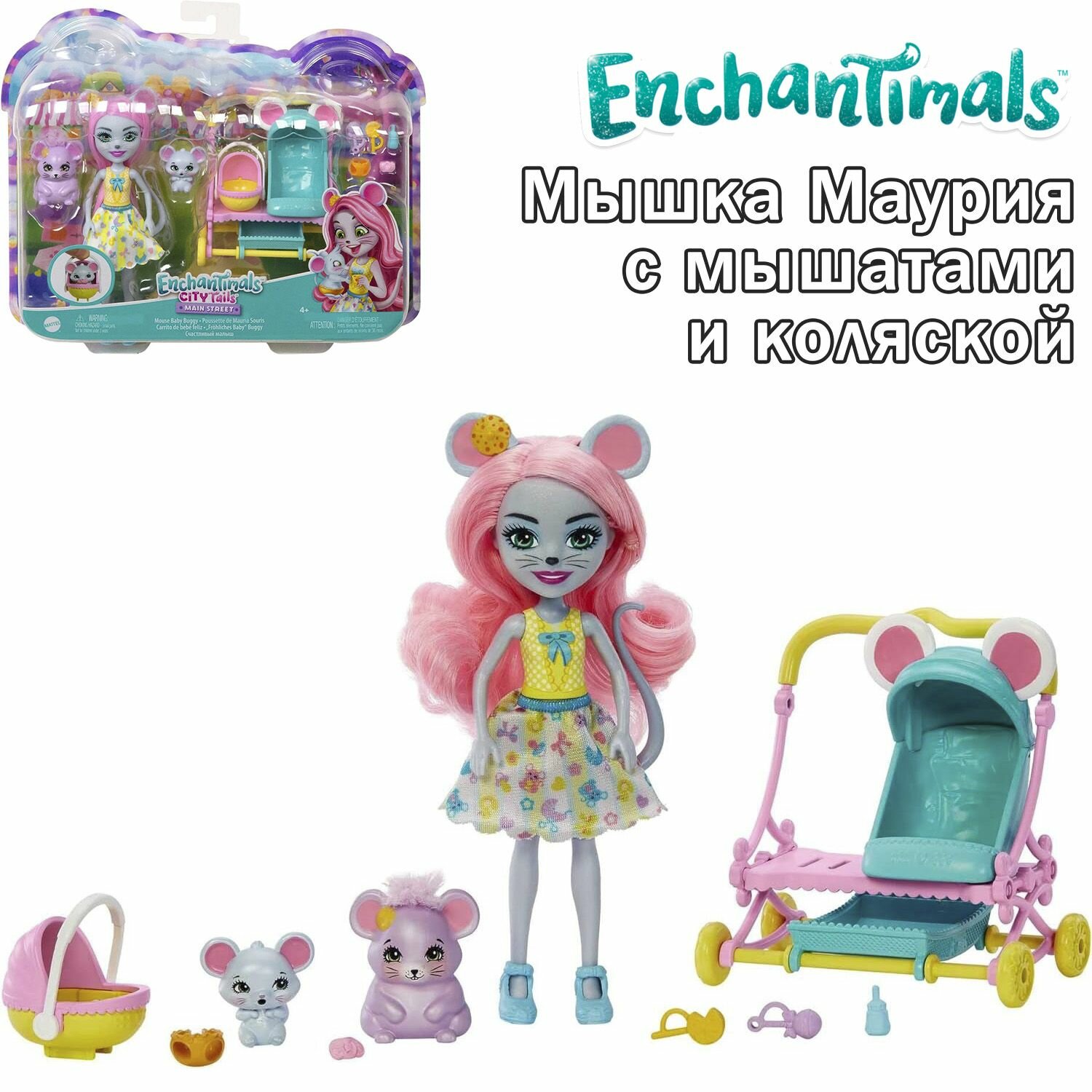 Купить Игровой набор Enchantimals Мышка Маурия с мышатами и коляской, HKR57
