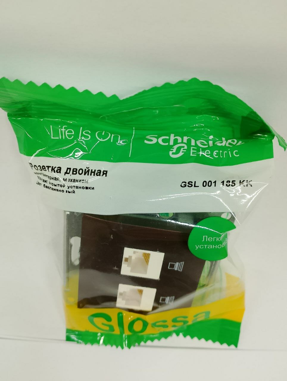 Розетка двойная компьютерная RJ45+RJ45 Schneider Electric Glossa, фисташковый GSL001085KK
