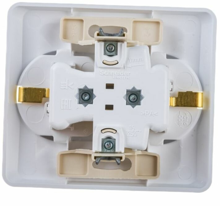 СохранитьРозетка Этюд двойная 16А IP20 250В с заземлением с защитными шторками Systeme Electric/Schneider Electric скрытая установка в сборе с рамкой белый PC16-008B интересное: