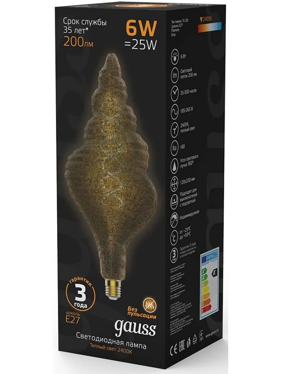 Купить Лампа Gauss Filament TL120 6W 200lm 2400К Е27 gray flexible LED 1/10