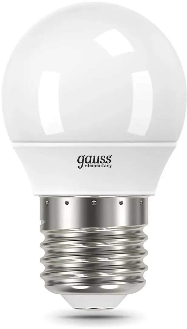 Gauss Elementary Шар G45 E27 6W(470lm) 6500K 6K 83x45 матовая, пластик/алюм. 53236 (арт. 641394)