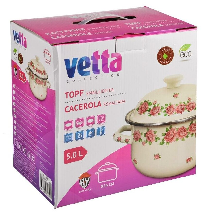 VETTA Розанна Кастрюля эмалированная, 24см, 5,0л, индукция