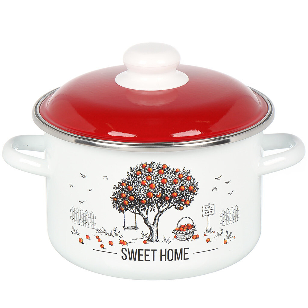 Кастрюля эмалированная Appetite Apple Tree, с крышкой, 2 л