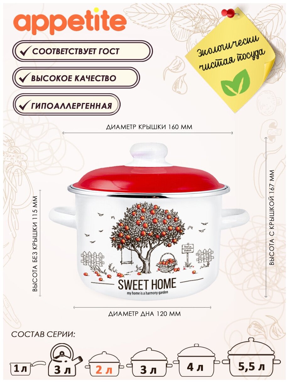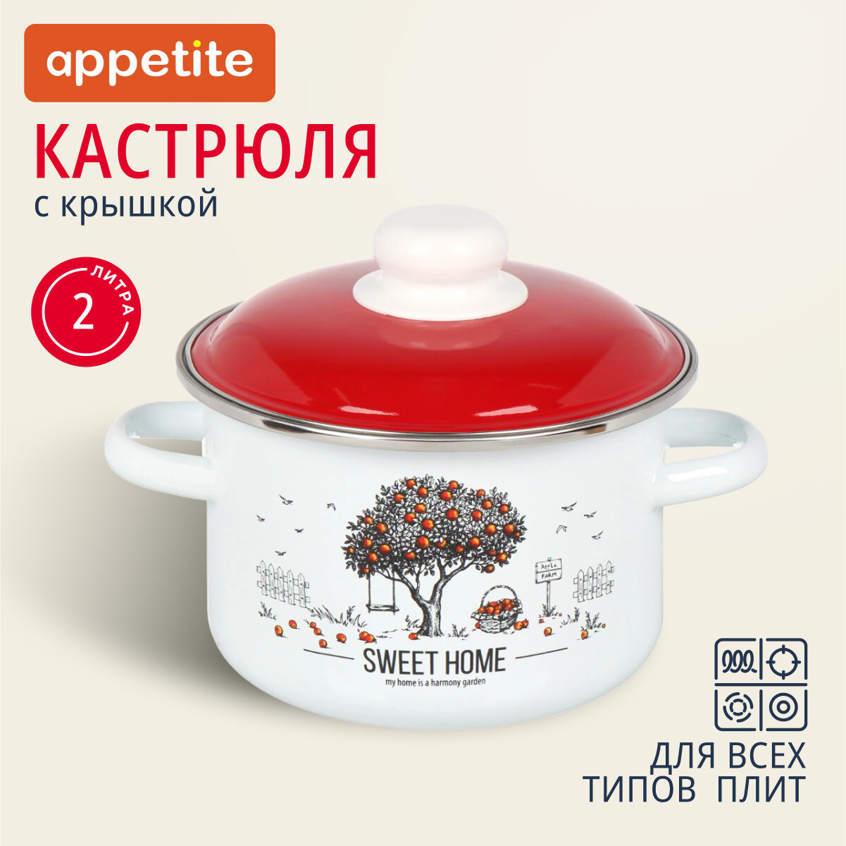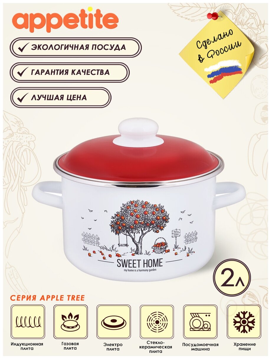 Купить Кастрюля эмалированная Appetite Apple Tree, с крышкой, 2 л