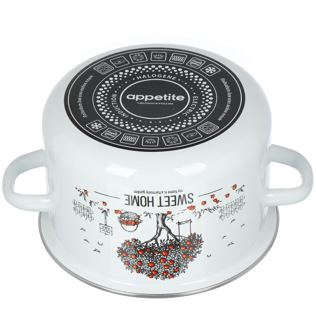 Кастрюля эмалированная 4 литра с крышкой для индукционной плиты, Appetite