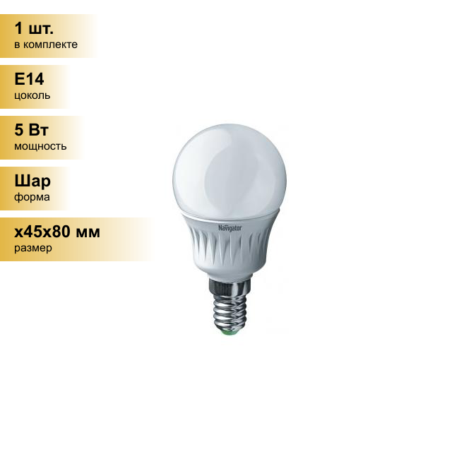 Лампа светодиодная 94 478 NLL-P-G45-5-230-4K-E14 94478 Navigator (5шт.в упак.)