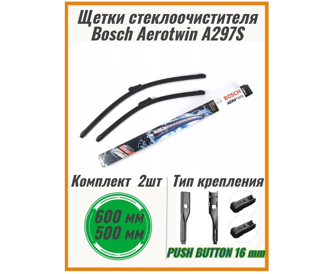 Щетка стеклоочистителя комплект BOSCH Aerotwin A297S, 600мм/500мм, бескаркасная, 2 шт., 3397007297