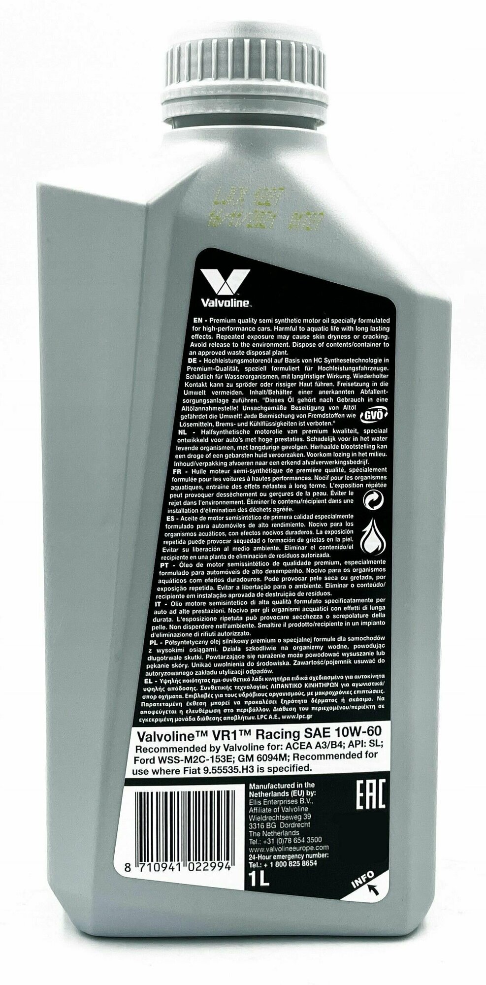 Купить VALVOLINE 873338 VR1 RACING 10W60 1
