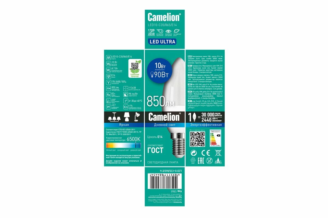 Camelion LED10-C35/865/E14 (Эл.лампа светодиодная 10Вт 220В) (1 шт.)