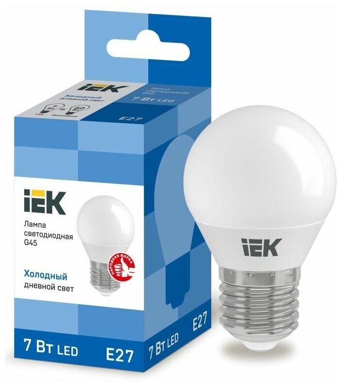 Сохранить1шт/уп. Лампа LED Шар 7Вт 230B G45 E27 630Лм 6500К Свет Холодный белый арт. LLE-G45-7-230-65-E27 IEK, уп. 1шт интересное:
