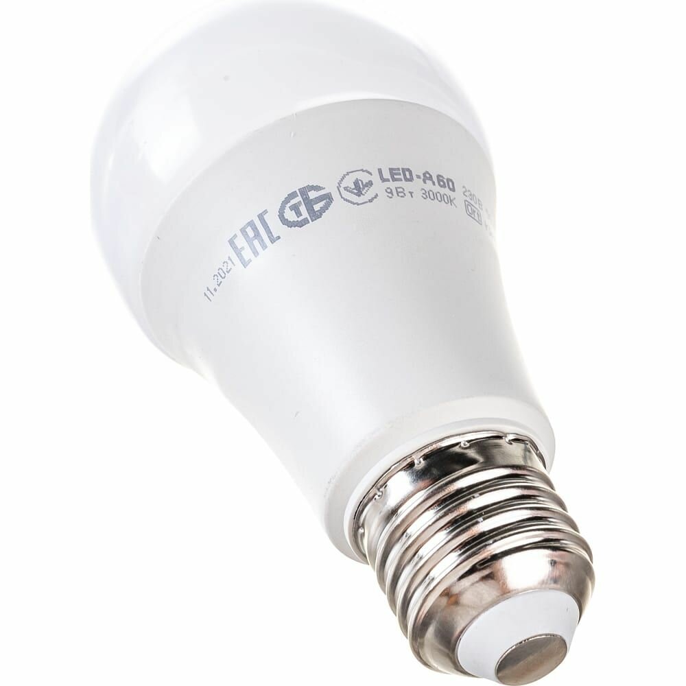 Лампа светодиодная ECO A60 9Вт грушевидная 3000К тепл. бел. E27 810лм 230-240В, IEK LLE-A60-9-230-30-E27 (1 шт.)