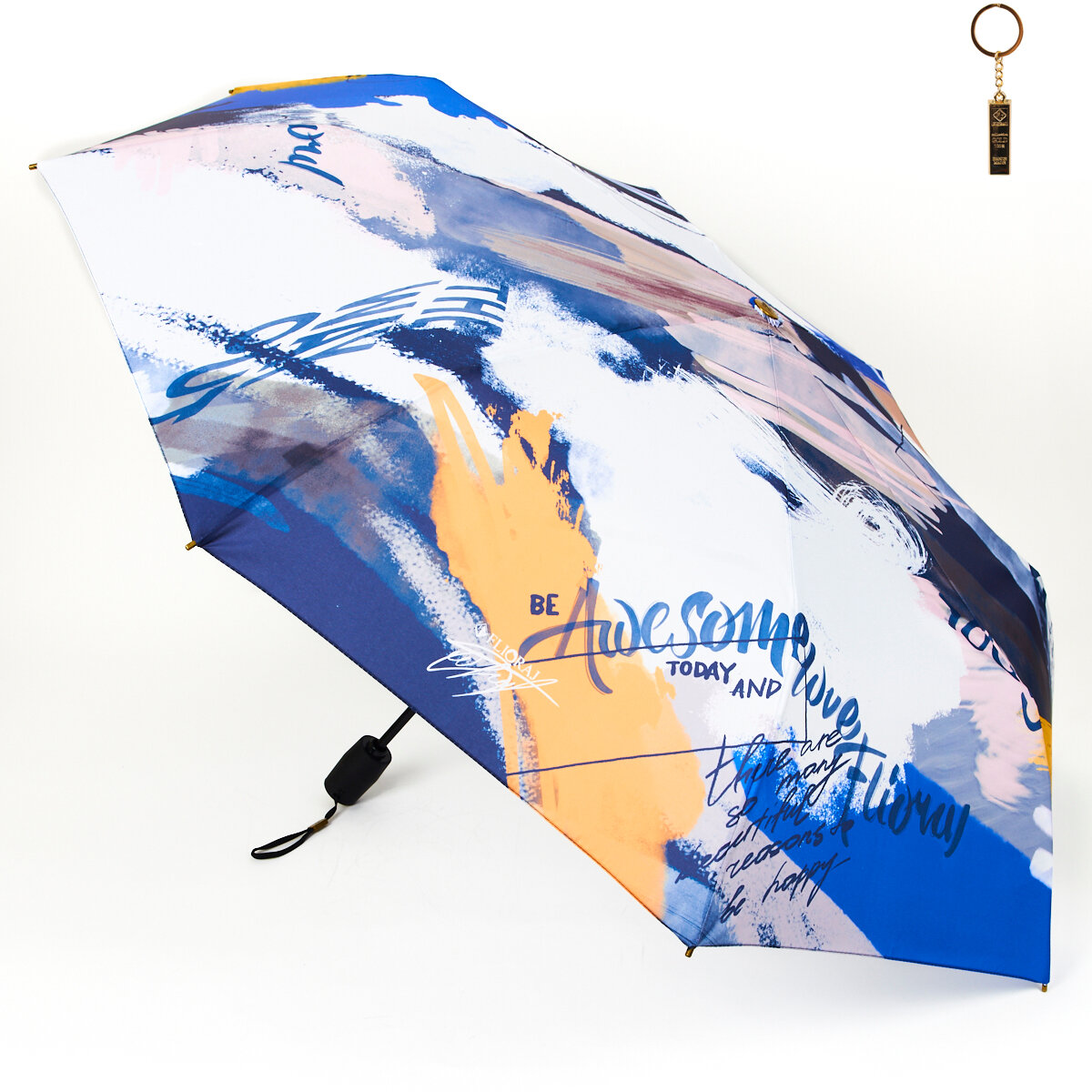 Зонт Женский Flioraj 3 сложения Автомат Синий Клякса с брелоком 16097 FJ интересное: