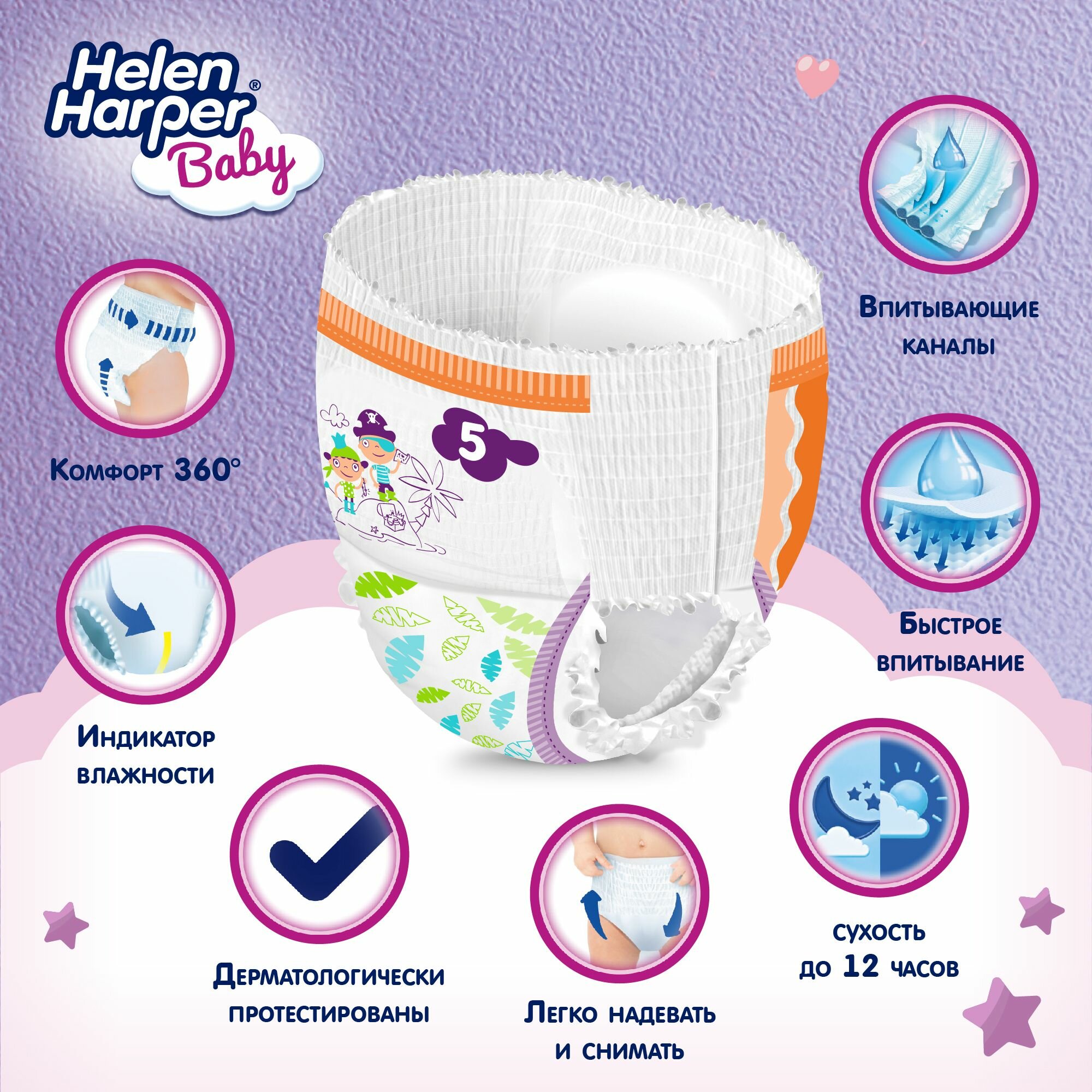Подгузники трусики детские, памперсы Helen Harper Baby, размер 5 Junior (12-18 кг), 22 шт