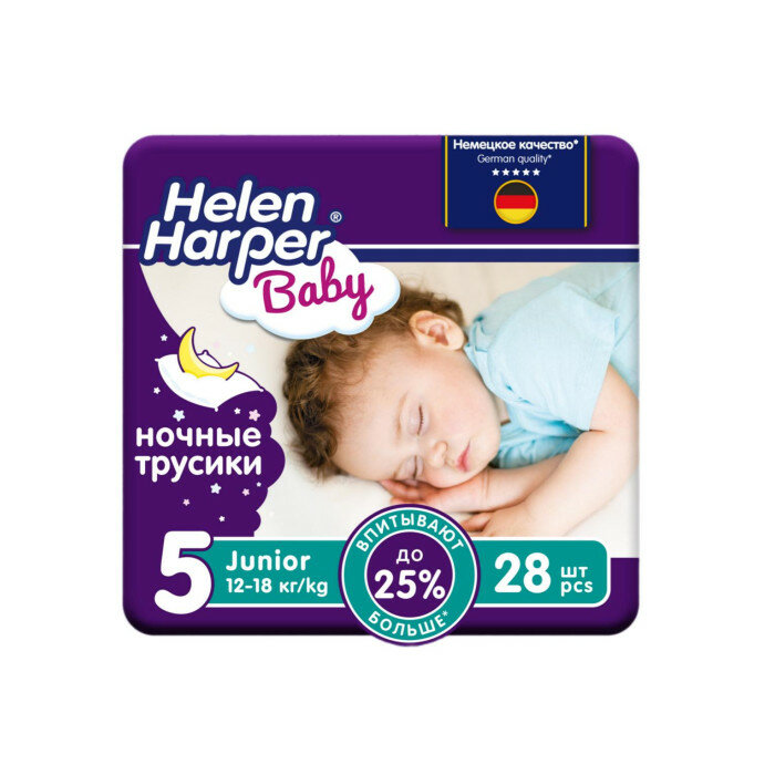 Ночные подгузники трусики детские, памперсы Helen Harper Baby, размер 5 Junior (12-18 кг), 28 шт
