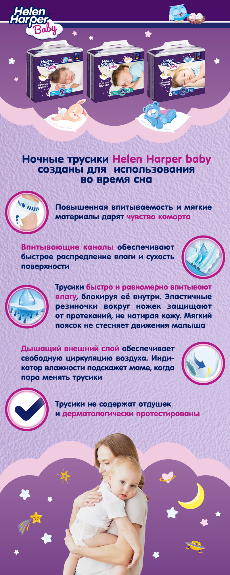 Подгузники трусики ночные 5/XL, 28 шт / Helen Harper Baby / размер 5 Junior (12-18 кг) /детские /усиленная впитываемость