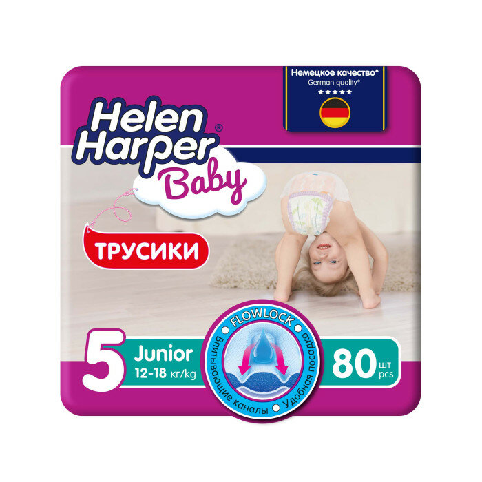 Подгузники трусики 5/XL, 80 шт / Helen Harper Baby/ размер 5 Junior (12-18 кг)/ детские/ с мягким пояском