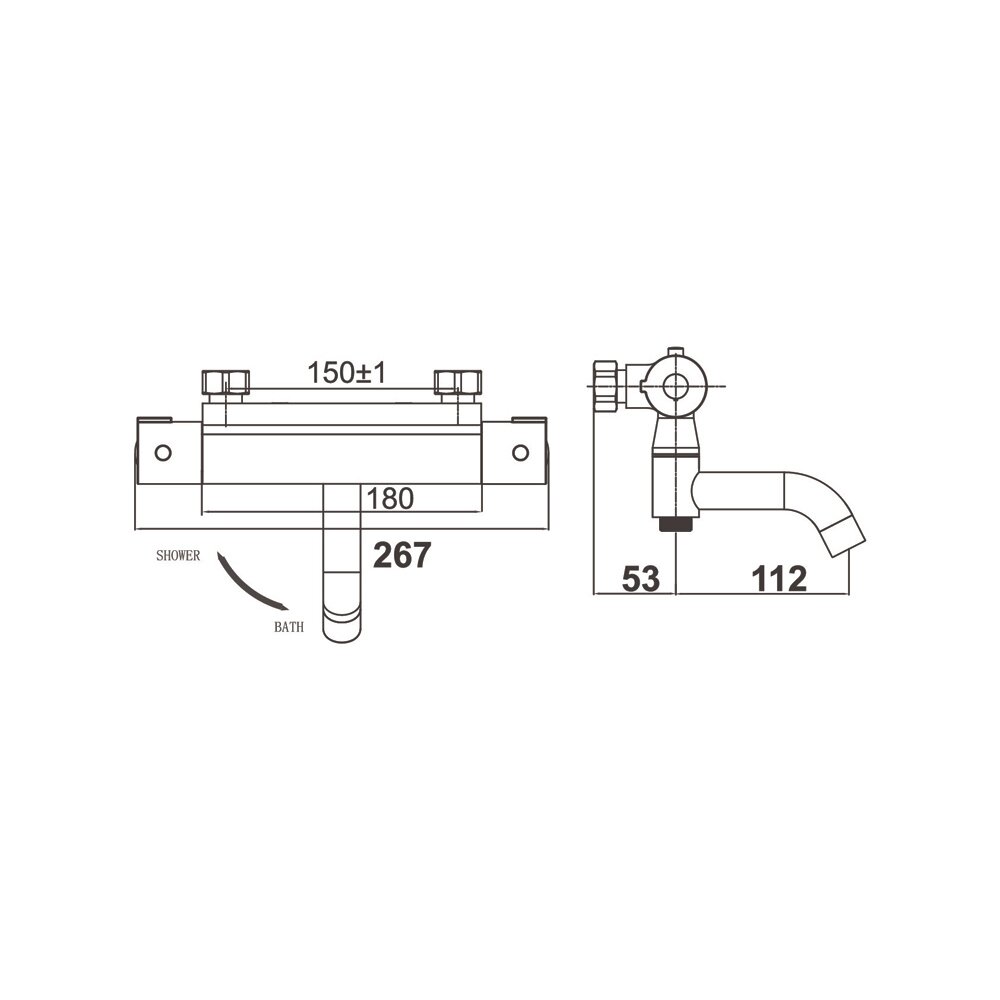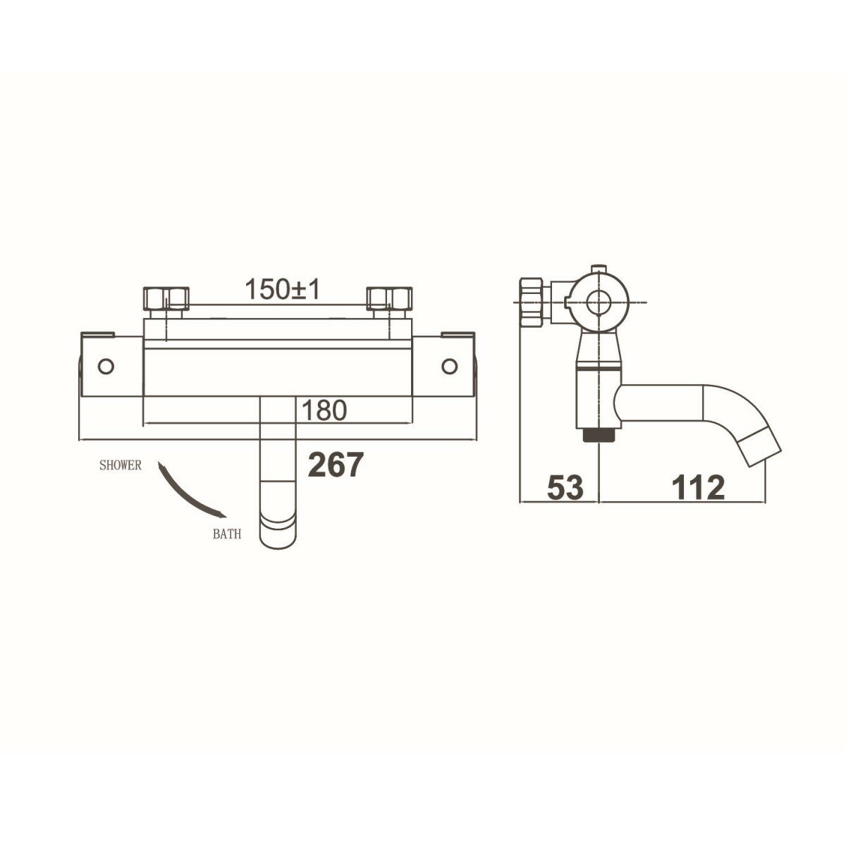 Термостатический смеситель D&K Bayern.Potsdam для ванны, короткий излив, с душевым гарнитуром, хром DA2153201