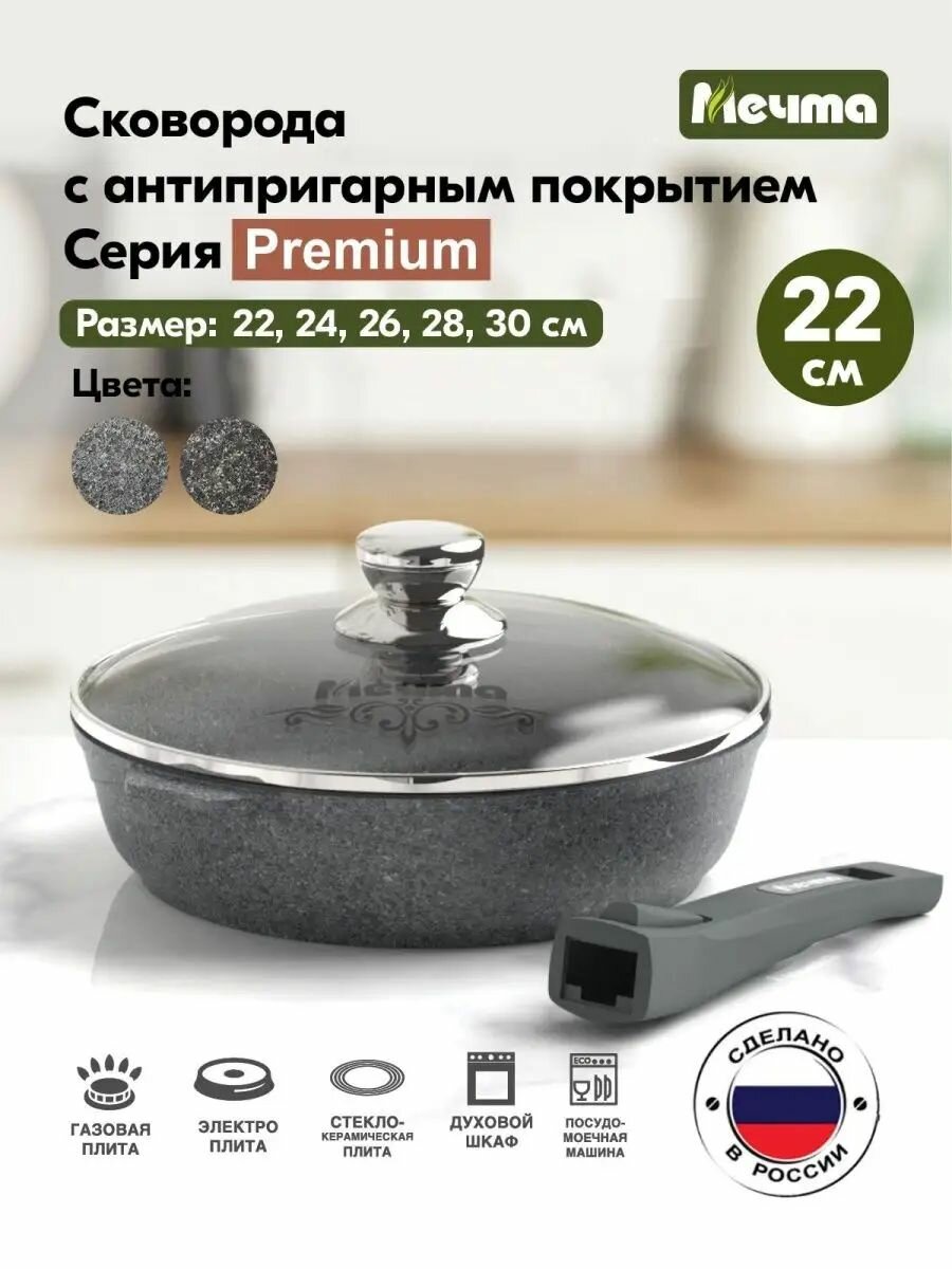 Купить Мечта Сковорода 22см со съемной ручкой и стекл. крышкой АП "Premium" grey арт. с022901