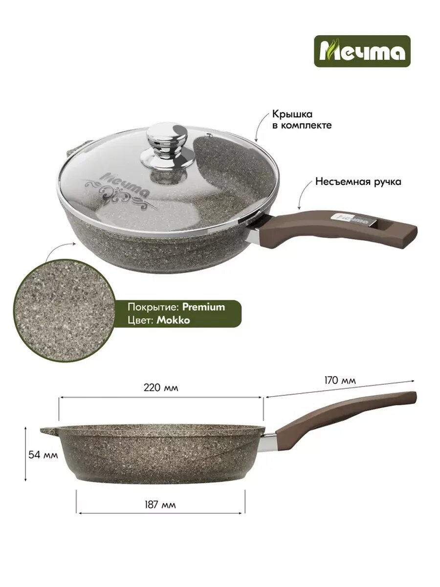 Сковорода Мечта Посуда мечта "Premium" (mokko) съемная ручка, 24 см